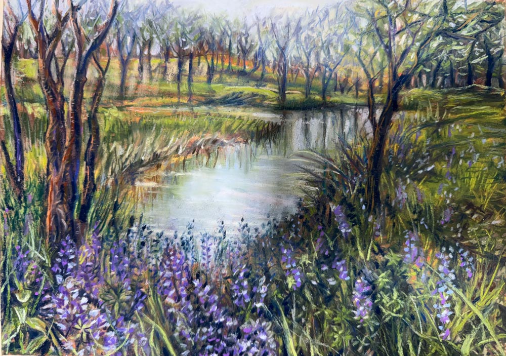 - The lupine flowers blooming in Miller Woods, part of the Indiana Dunes National Park, Lake County, Indiana. The original is a soft pastel painting.