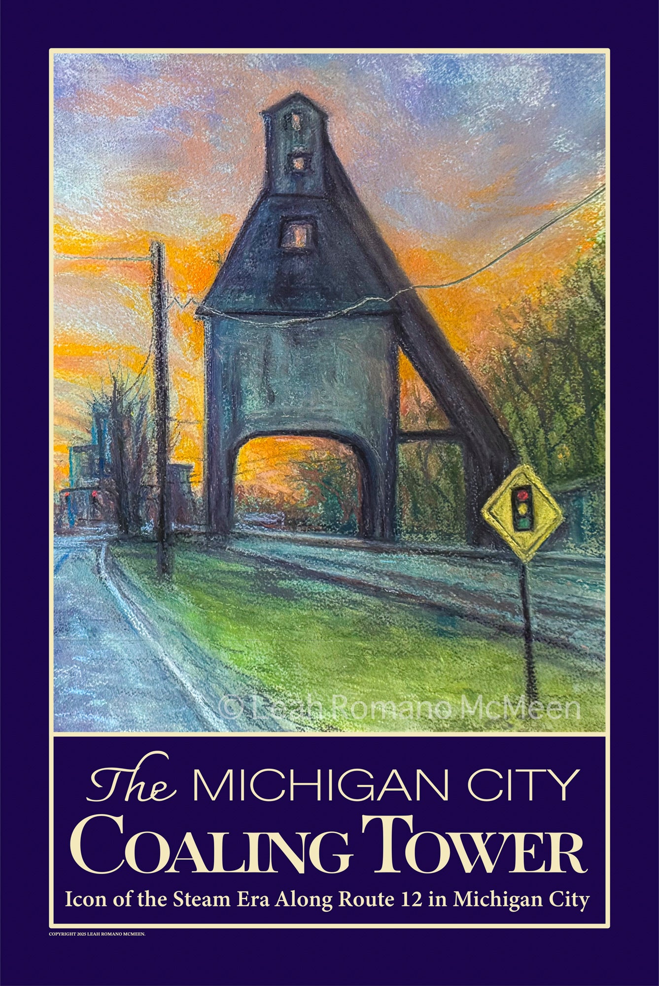 In the spirit of the South Shore Train Line posters, this is a soft pastel of the Coaling Tower in Michigan City, Indiana.